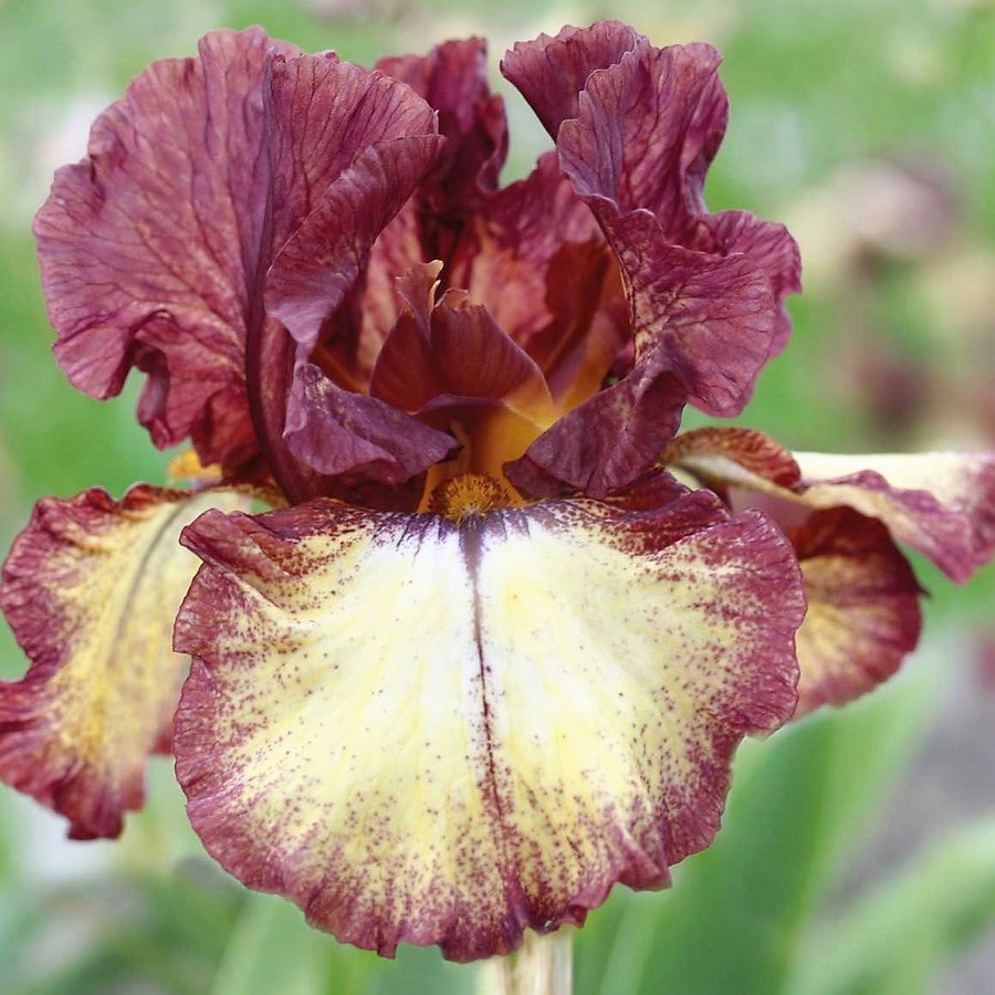 Ирис бородатый Бургунди Браун - растение высотой до 80 см. Период цветения: июнь-июль. Цветок имеет необычный окрас: верхние лепестки красно-коричневые, нижние кремово-желтые с красно-коричневой каймой. Для посадки выбирают солнечные места, лёгкие суглинистые почвы с нейтральной реакцией. Полив умеренный 1-2 раза в неделю, растение не переносит избыточного увлажнения. Осенью проводят обрезку листьев, на высоте 10-15 сантиметров от земли. На зиму Ирис бородатый Бургунди Браун укрывают лапником или укрывным материалом.
