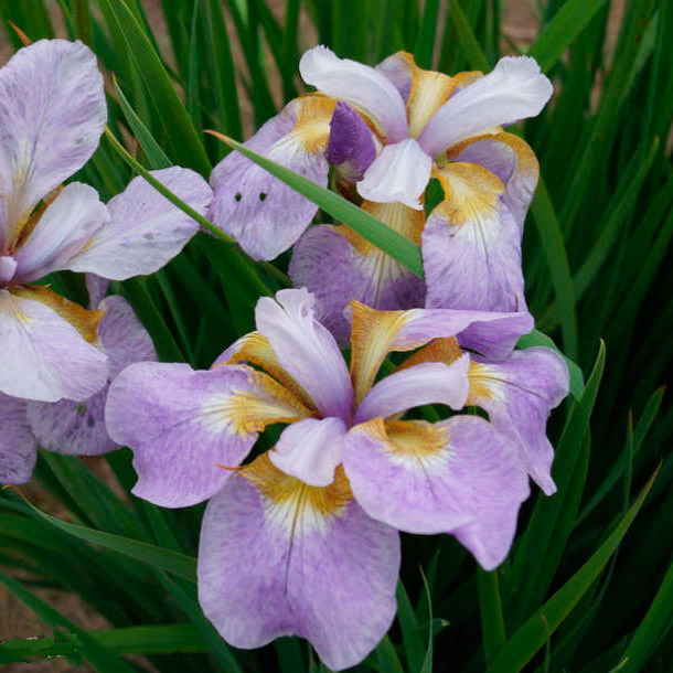 Ирис сибирский Рикуги Сакура оценят по достоинству все поклонники этих многолетних и неприхотливых в уходе растений. Удивительной красоты нежные лавандово-розовые плоские лепестки имеют узкое основание медного оттенка. Цветки этого представителя сибирской сортовой серии напоминают японские ирисы. В высоту растение достигает 60 сантиметров. С его помощью можно очень эффектно украсить берега садового водоема, создавать смешанные посадки, а также в силу небольшого роста выращивать в контейнере для украшения террасы или патио. Отлично переносит зимовку без специального укрытия.