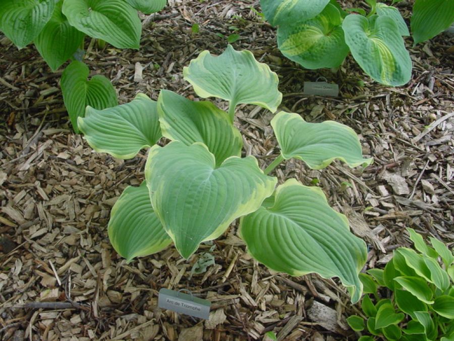 Хоста Аrс dе Triоmрhе относится к группе очень крупных растений. Сорт поражает своими размерами. Его шикарные, бело-зеленые глянцевые листья собраны в большую прикорневую розетку, которая требует для роста довольно обширного пространства. При хороших условиях выращивания куст достигает в ширину до 140 см и в высоту до 60 см. С июня начинается цветение, которое может продлиться до августа. Простые, небольшие, не имеющие запаха светло-сиреневые цветки появляются на длинных цветоносах. Хоста Аrс dе Triоmрhе разрастается несколько медленно, предпочитая расти на питательных, богатых органикой, увлажненных грунтах с хорошим дренажем. Чтобы многолетник чувствовал себя уютно, его лучше высаживать в тенистых или полутенистых уголках.