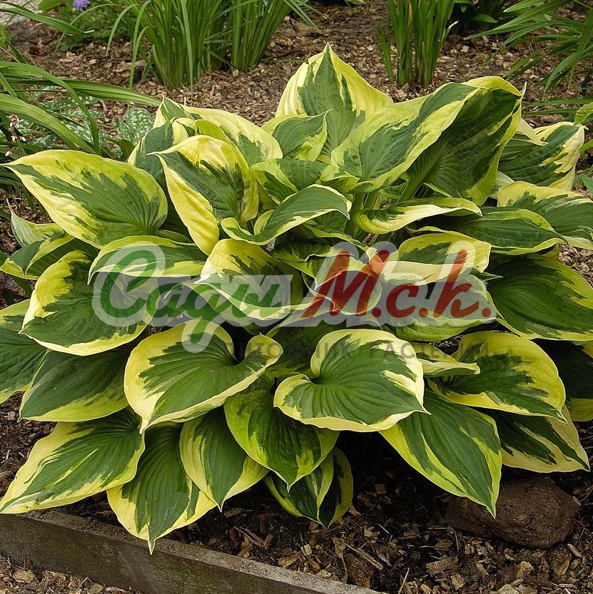 Хоста Bill Brink – красивое, многолетнее, декоративное растение с густой и пышной листвой. Его яркие, крупные, блестящие листовые пластины сердцевидной формы близко расположены друг к другу, поэтому образуют плотный, компактный куст высотой до полуметра. На темно-зеленом фоне особенно мило выглядит неравномерная по ширине золотистая кайма. Со временем листва немного закручивается, а ее край меняет окраску, приобретая цвет слоновой кости. В разгар лета растение пышно зацветает, выбрасывая соцветия колокольчатых цветков лавандовой окраски с более темными полосками. Сорт имеет хорошую репутацию быстрорастущего, устойчивого к заболеваниям и неприхотливого растения.