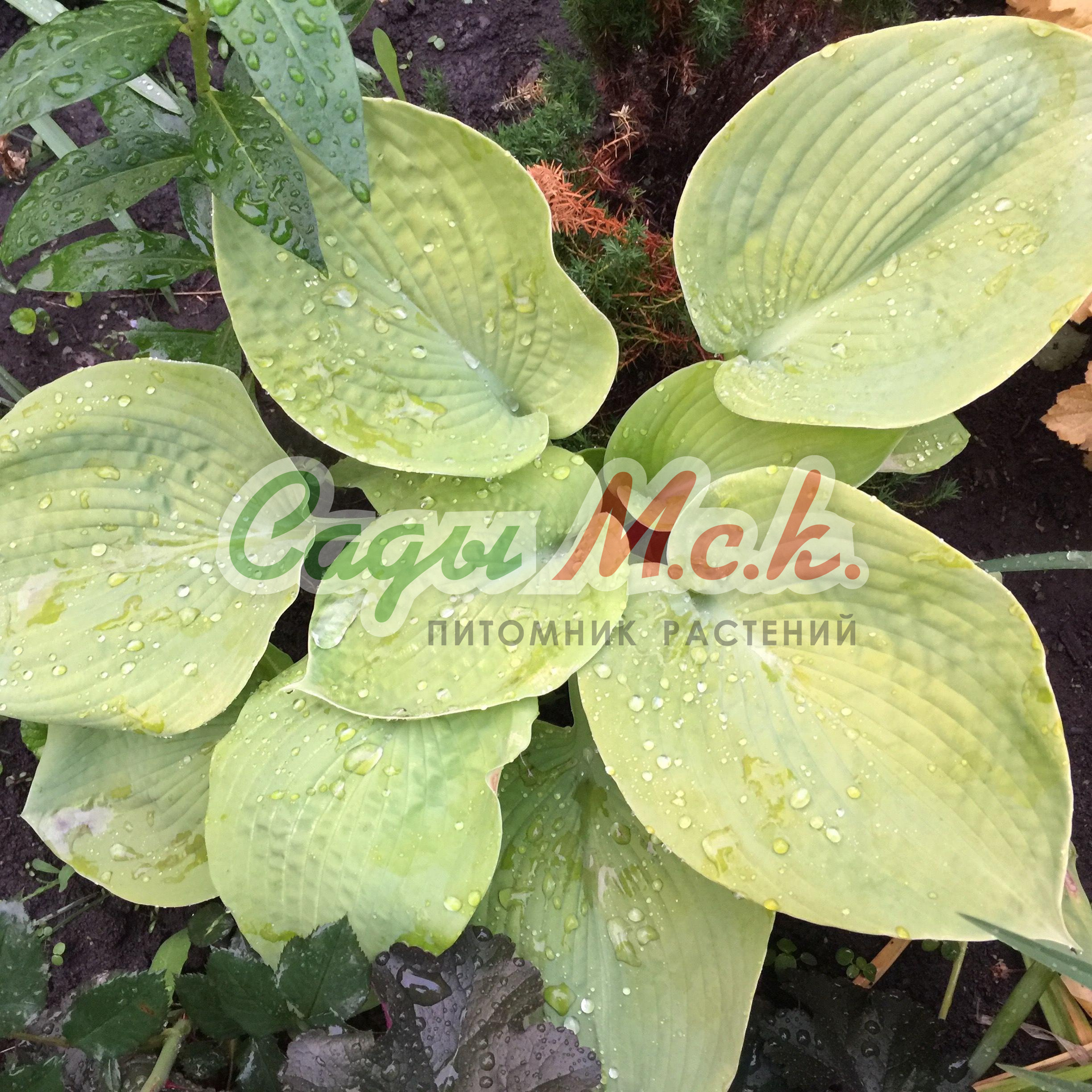 Хоста Bluе Mаmmоth – очень крупное гибридное растение с голубой окраской, которое на питательных почвах может достигнуть в ширину 100 – 120 см. У многолетника овально-сердцевидные, широкие листовые пластины удивительного голубого цвета с сизым отливом, имеющие волнистую поверхность и вафельной фактуру. Впечатляет контраст насыщенно голубой листвы и белых колокольчатых цветков, которые появляются в конце августа. Сорт тенелюбивый, хотя может переносить и солнечные места, но при этом теряет насыщенность голубого цвета. Растение хорошо разрастается, не поражается болезнями и вредителями, любит плодородные и слегка увлажненные почвы.