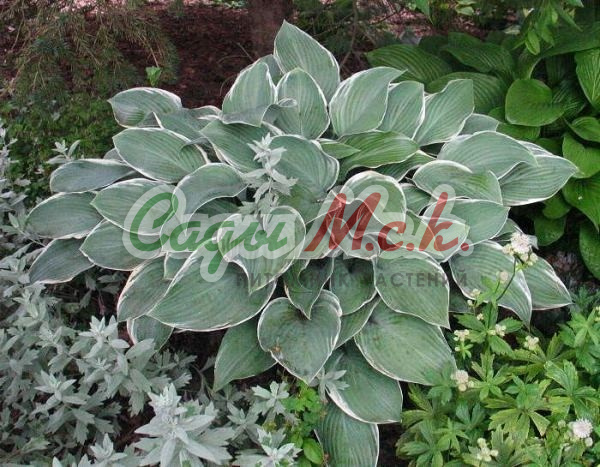 Хоста гибридная Орайонз Белт (Orion's Belt) – это красивый кустарник с крупными блестящими листьями в форме сердца с широким окаймлением белого цвета. Листья немного вытянутые. Цветы хосты лавандовые, они появляются на цветоносе 55 см высотой. Цветение длится с начала лета и до середины июля. Скорость роста у растения средняя. Куст достигает 45 см в высоту и 90 см в ширину. Данный сорт лучше всего растет в полутени. Сажать Хосту гибридную Орайонз Белт можно в любой период с марта и до ноября. Кустарник любит увлажнение, поэтому при посадке в жаркое лето ему потребуется обильный полив. Зимует растение хорошо, не требуя при этом создания дополнительного укрытия.