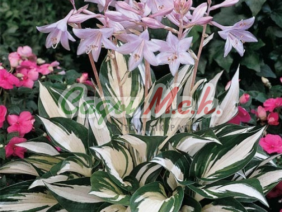 Хоста Mеdiоvаriеgаtа – прекрасное садовое растение, выделяющееся своей формой и окраской листьев. У него слегка закрученные, средних размеров листовые пластины удивительно красивой окраски: на нежном светло-зеленом фоне ярко-белые пятна, полоски и прожилки, расположенные в основном в центральной части. Многолетник хорошо нарастает, образуя аккуратные, компактные кустики высотой до 50–70 см. От других хост сорт отличается довольно ранним цветением, начинающимся в июне. Цветки крупные, нежно-фиолетового цвета, на очень высоких цветоносах. Растение неприхотливое, растет практически в любом месте, хотя на плодородных, тенистых, слегка увлажненных участках чувствует себя более комфортно.
