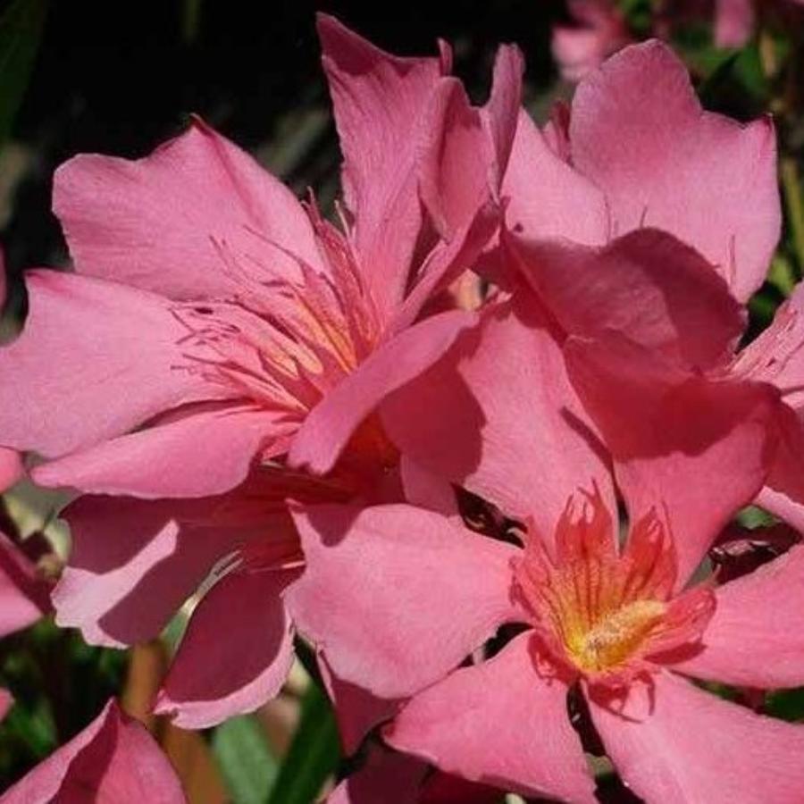 Олеандр обыкновенный Восходящее солнце (лат. Nerium oleander Soleil Levant) - среднерослый вечнозеленый кустарник. Зацветает летом нежными насыщенно-розовыми простыми цветками, состоящими в больших соцветиях. Растение предпочитает солнце и тепло. Может выращиваться как комнатная культура. Внимание! Олеандр - ядовитое растение, поэтому при его культивировании требуется осторожность.
