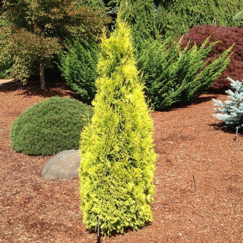 Туя западная Янтарь (Thuja occidentalis Jantar) используется как яркий цветовой акцент при составлении ландшафтных композиций. Крона колоновидной формы. Побеги располагаются вертикально, разветвлены в виде веера. В высоту достигает 4 метров, в диаметре до 1,20 метра. Хвоя чешуйчатая, желто-золотистая, зимой оранжево-золотистая. Плоды – немногочисленные, мелкие шишки. После появления - желто-зеленые, позже коричневые. Для защиты от вредителей весной необходимо проводить профилактическое опрыскивание инсектицидными препаратами. Туя западная Янтарь требует защиты от ветров. Предпочитает солнечные участки или полутень.